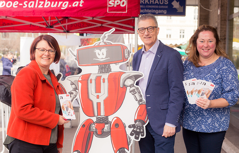 Mit einer Straßenaktion machten die SPÖ Frauen auf ihre neue Kampagne aufmerksam. Dabei geht es um die neuen digitalen Herausforderungen in der Arbeitswelt. „Frauen sind nach wie vor am Arbeitsmarkt benachteiligt. Durch die Digitalisierung und Automatisierung steht die Arbeitswelt vor einem neuen Umbruch. Das birgt Gefahren, aber auch Chancen, wenn wir die Rahmenbedingungen für die Arbeit der Zukunft aktiv mitgestalten. Frauen müssen zu Profiteurinnen der Digitalisierung werden“, erklärt die SPÖ-Landesfrauenvorsitzende Ingrid Riezler-Kainzner.