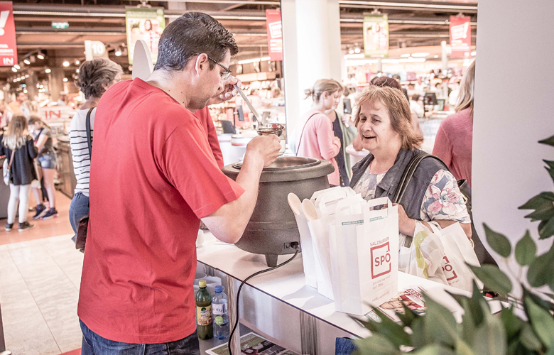 Bild unten: LGF Mag. Hannes Mathes schenkte laufend frisch gekochte und köstliche Suppe – unter anderem im Europark und im ganzen Salzburger Land – aus. (SPÖ)